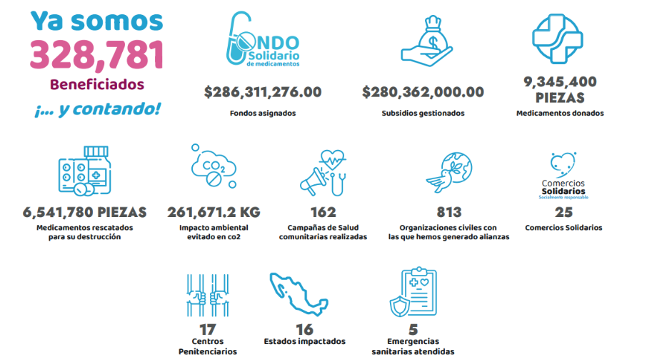A través de nuestros programas, hemos logrado conectar recursos con quienes más los necesitan, demostrando que es posible construir una sociedad más equitativa en acceso a medicamentos y salud.